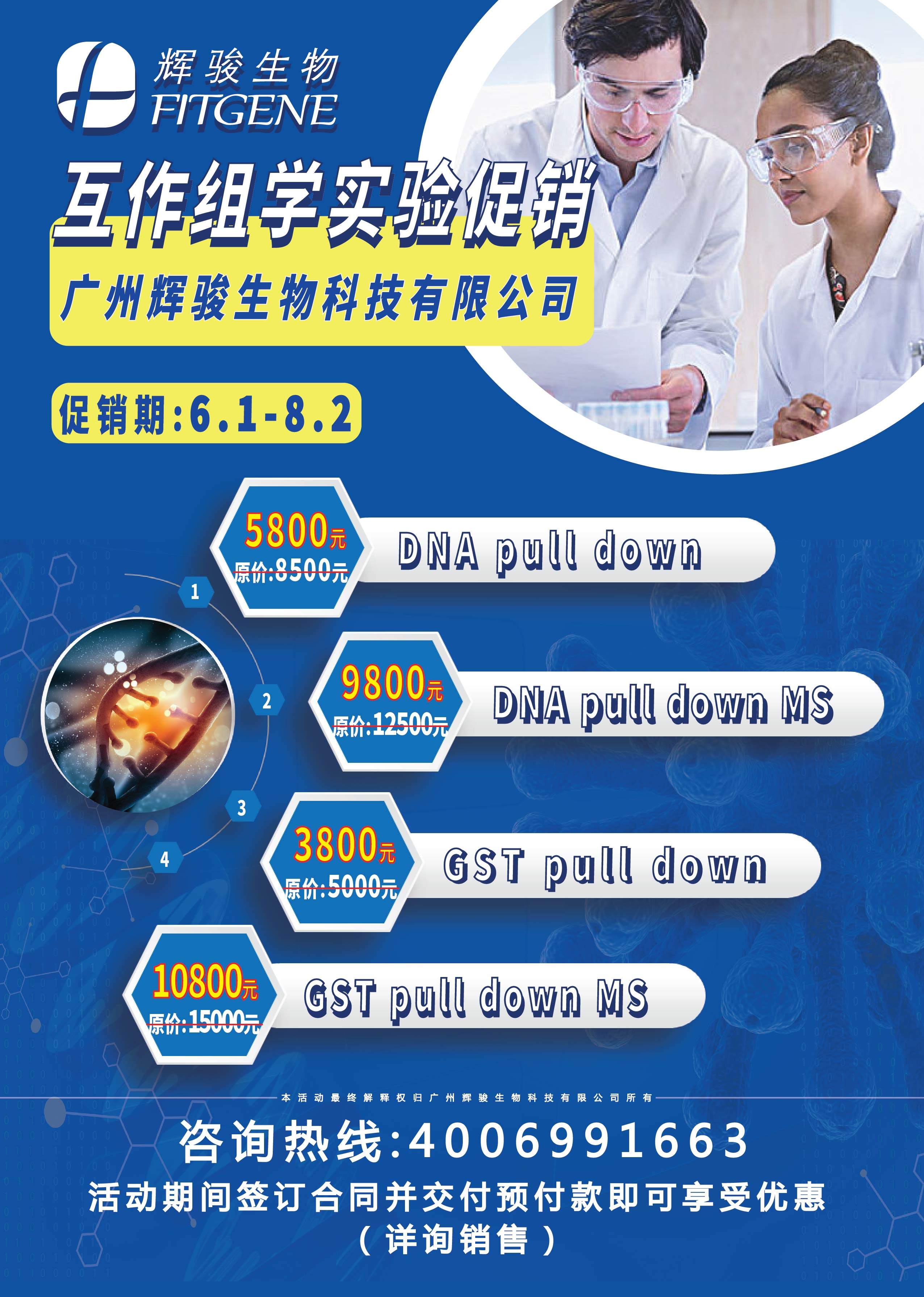 輝駿生物互作組學實驗大促銷,需要DNA pull down、DNA pull down MS、GST pull down、GST pull down MS實驗的小伙伴趕緊聯(lián)系我們吧?。?!